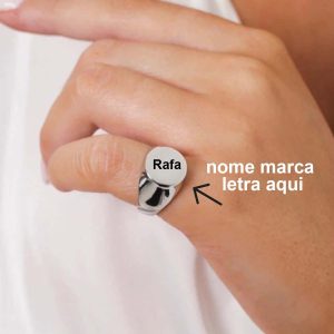 Anel Ajustavel Mindinho Redondo Prata ou Dourado Personalizado com Nome Marca Logo Letra