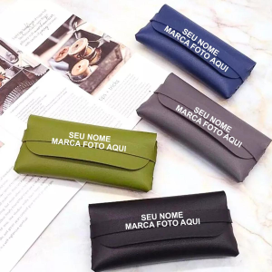 Case Capa Capinha Estojo Bolsinha Bolsa Óculos Courino Cores Personalizada Nome Foto Marca